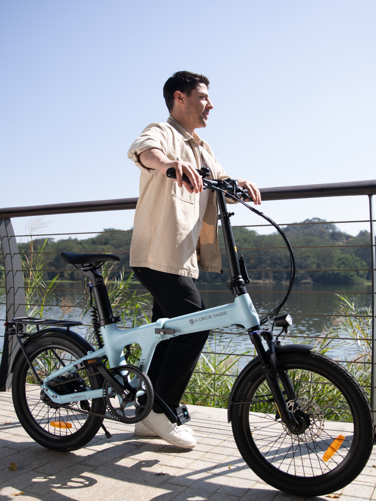 AIR20 PROは、ロック可能なフロントサスペンションシステムを備えており、異なる道路状況でも快適なライディング体験を提供します。でこぼこした山道でも、平坦な都市の道路でも、フロントサスペンションのロック装置を簡単に調整するだけです。例えば、平坦な道路ではフロントサスペンションをロックすると、ライディングの効率が向上します。複雑な地形ではサスペンションを解放し、スムーズな乗り心地をお楽しみください。