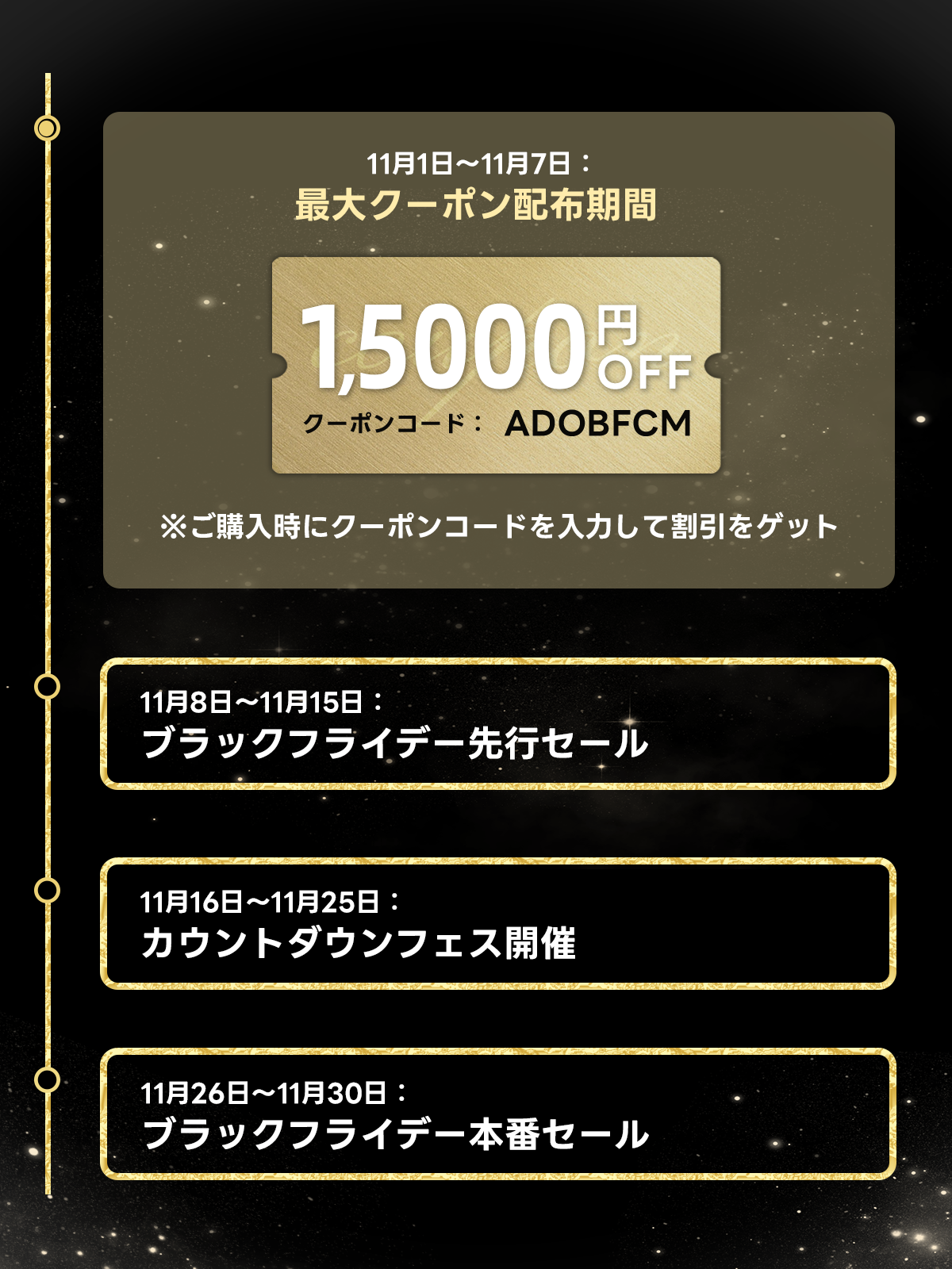 2. ブラックフライデー感謝祭限定クーポン(11月1日~11月7日)