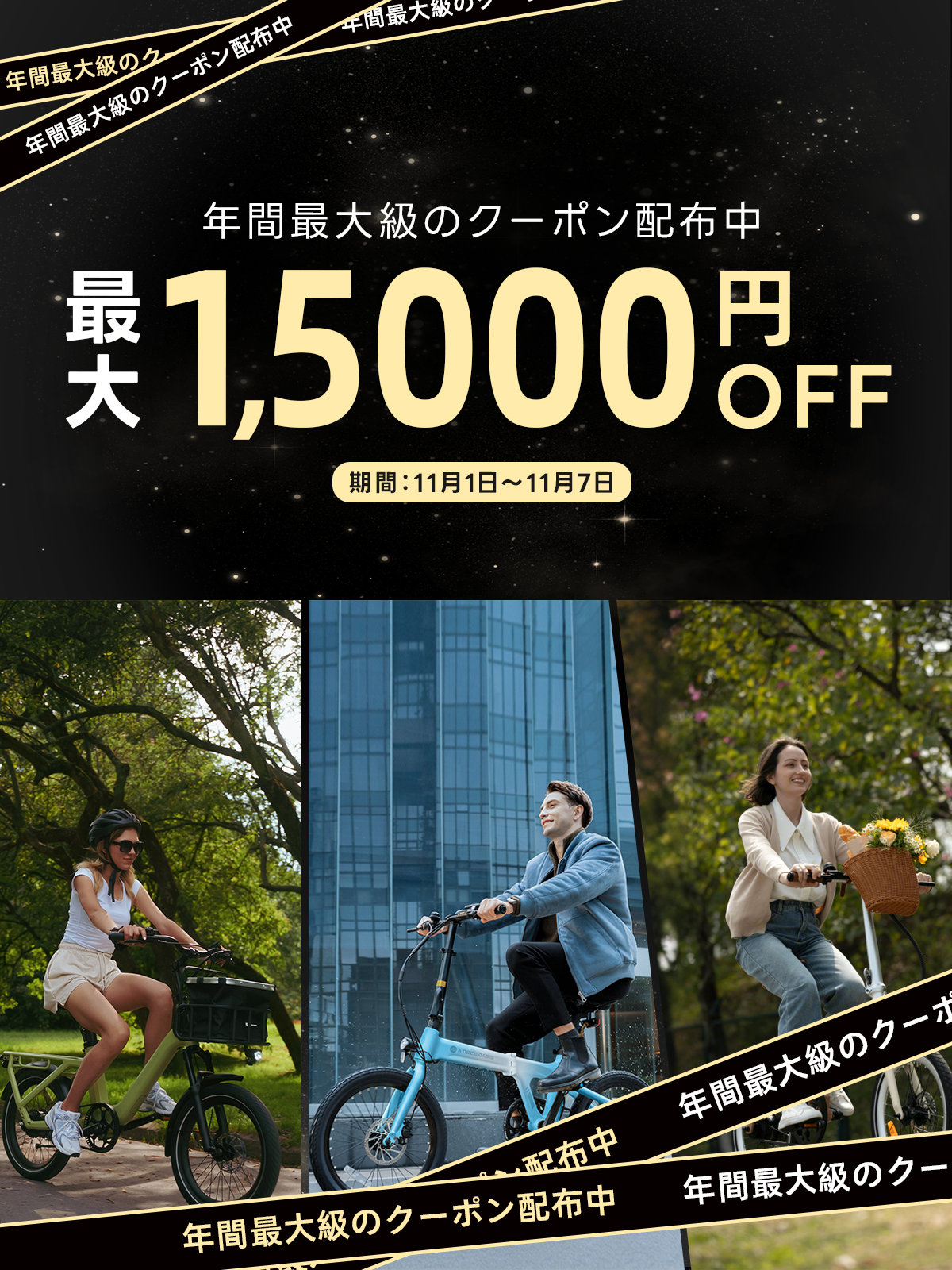 本クーポンは有効期限内のみご利用可能で、ADO公式サイト上のすべての電動アシスト自転車に適用されます。 他の割引コードとの併用はできず、1枚につき1回のみ、また1注文につき1枚のみご利用いただけます。