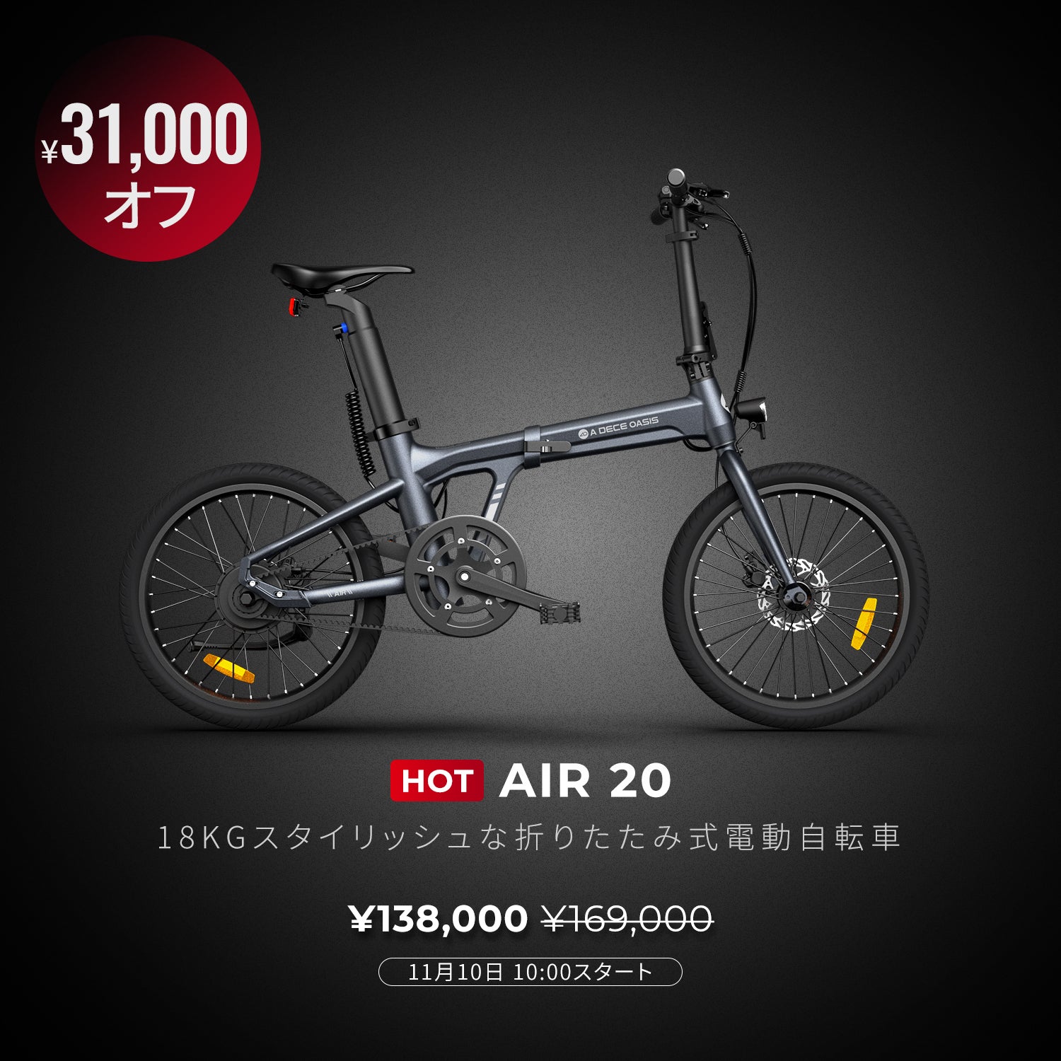 - 持ち運びに便利: 当社の電動自転車は軽量設計(Air 20はわずか18kg)で折りたたみ可能。都市部での通勤や小旅行に最適です。わずか0.2平方メートルのスペースで、公共交通機関やオフィス、自宅での保管も場所を取りません。