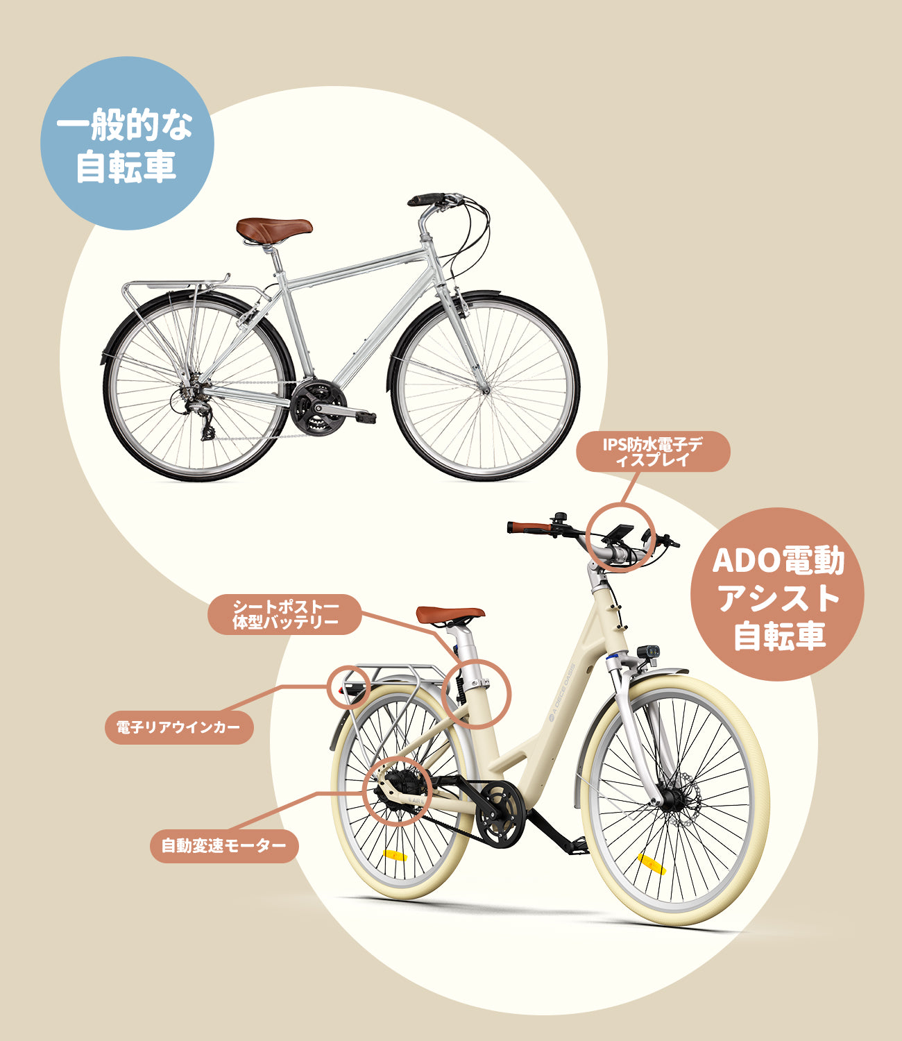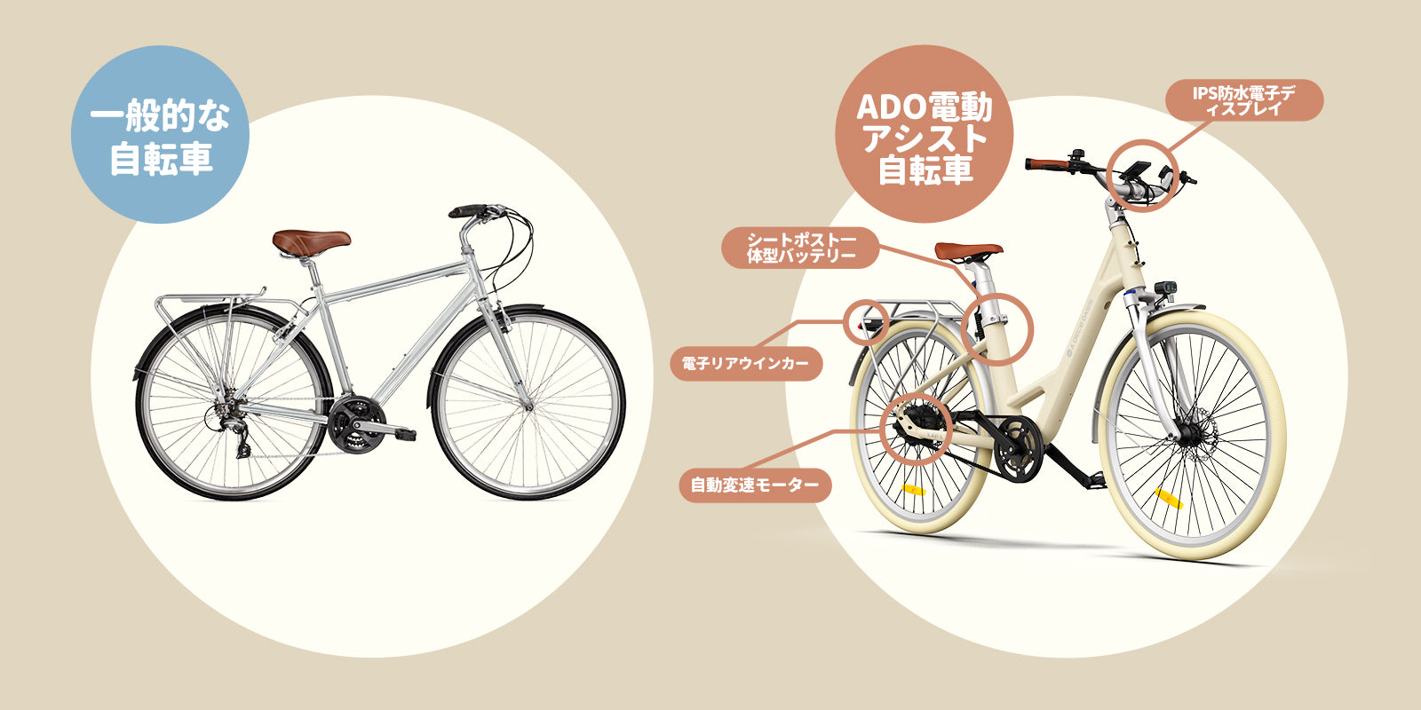 免許不要で、一般自転車と同様に、どなたでも手軽に乗ることができます。一般自転車と異なり、電動アシスト自転車にはスイッチ・バッテリー・モーターが搭載されており、より快適な走行をサポートします。