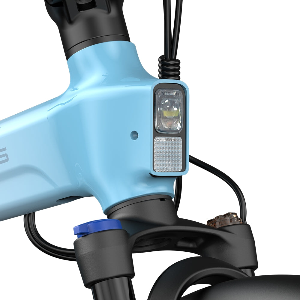 AIR20 Ultraは、ロック可能なフロントサスペンションシステムを備えており、異なる道路状況でも快適なライディング体験を提供します。でこぼこした山道でも、平坦な都市の道路でも、フロントサスペンションのロック装置を簡単に調整するだけです。例えば、平坦な道路ではフロントサスペンションをロックすると、ライディングの効率が向上します。複雑な地形ではサスペンションを解放し、スムーズな乗り心地をお楽しみください。 右側にある青色のダイヤルがサスペンションのロック機能の切り替えスイッチとなっております。こちらを「OPEN」の方向に回すことでサスペンションが作動し、「CLOSE」の方向に回すことでロック(固定)されます。 左側にある黒色のダイヤルはサスペンションの強度(硬さ)を調整するものです。 「+」方向に回すと硬くなり、「−」方向に回すと柔らかくなる仕組みとなっております。