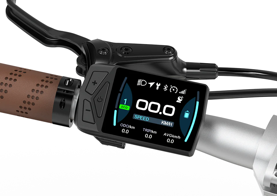 自動変速システムは搭載されていませんが、ADO Air Carbon は軽量なカーボンファイバーフレームと高効率なBAFANG電動駆動システムを組み合わせることで、スムーズで快適な走行を実現しています。簡単に切り替え可能なデュアルスピードモードにより、さまざまな速度や勾配に応じて自由に調整が可能です。
